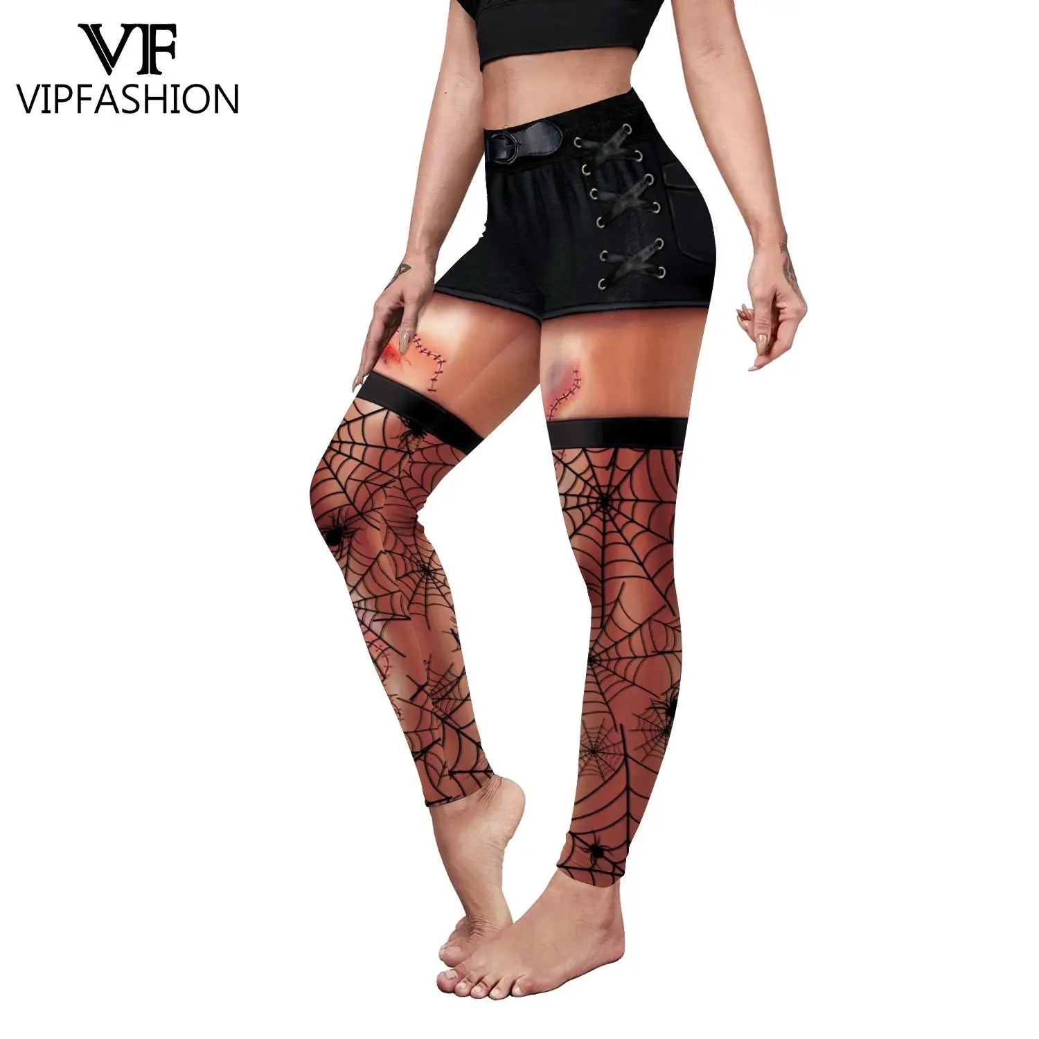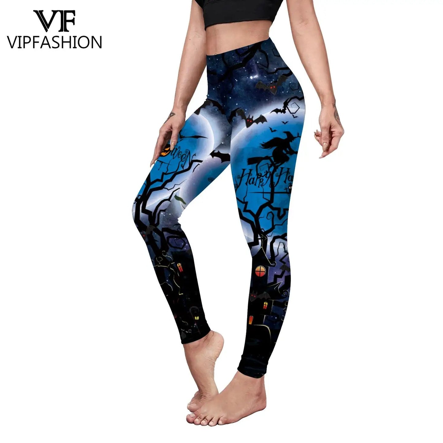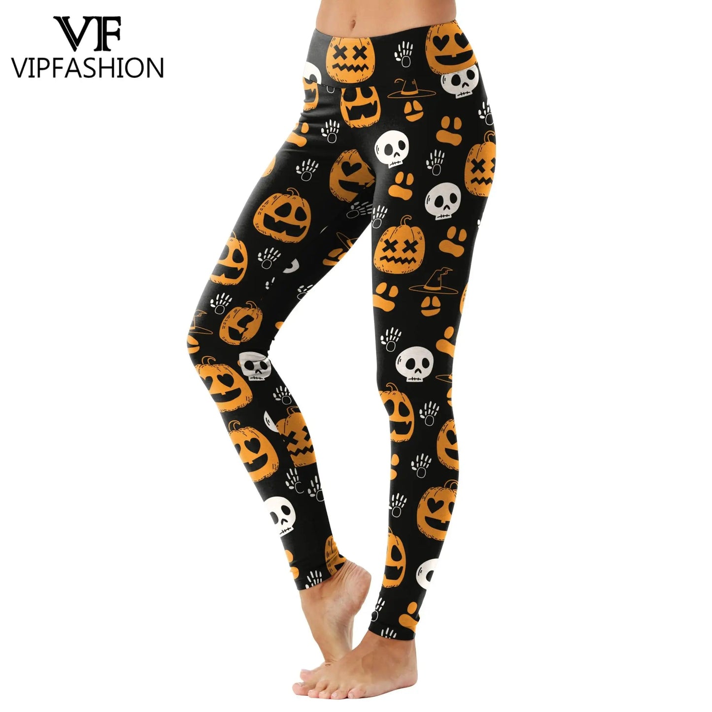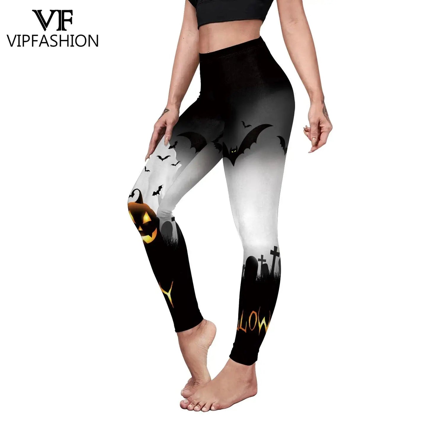 VIP FASHION Halloween Cosplay Leggings for Women Skull 3D Print Pants Slim Sexy Tights Fitness Workout Trousers Carnival Bottom
