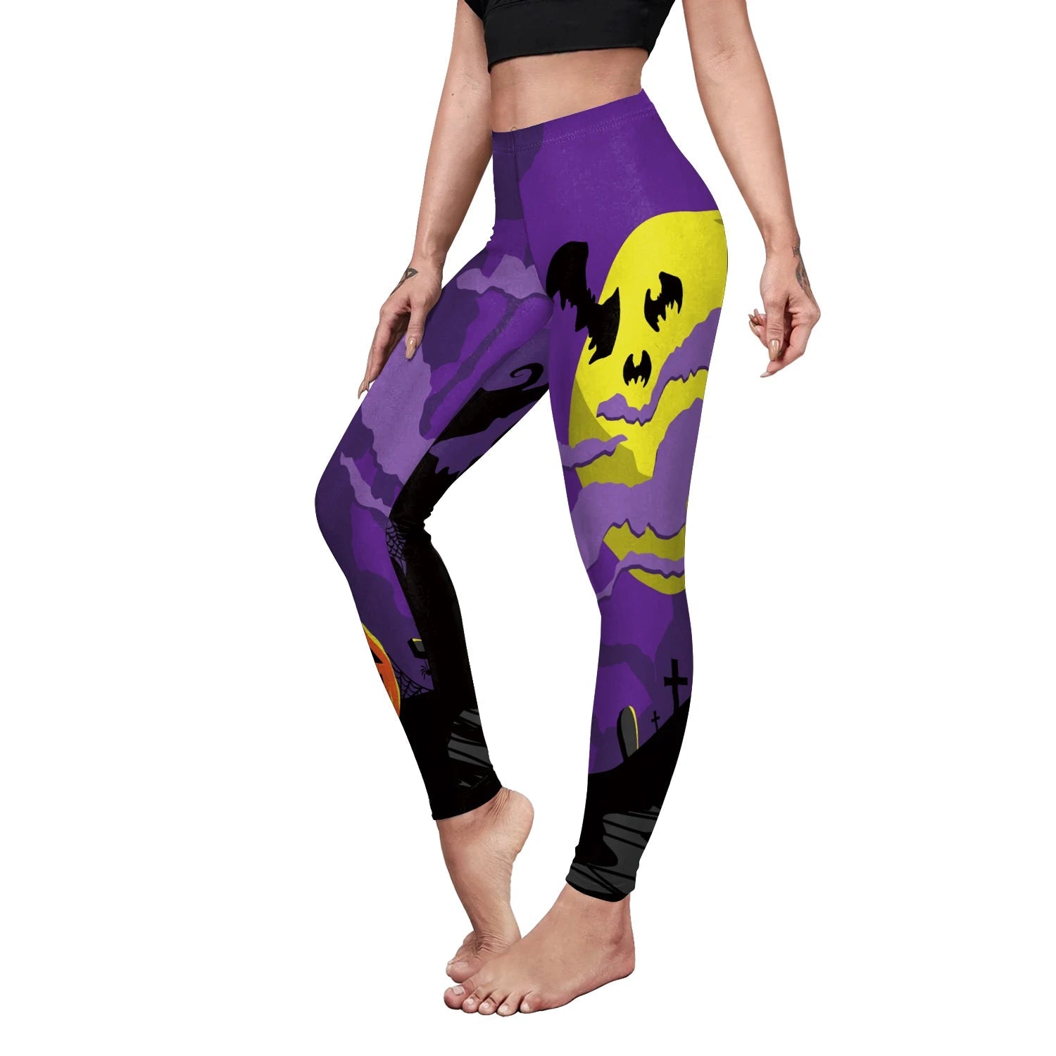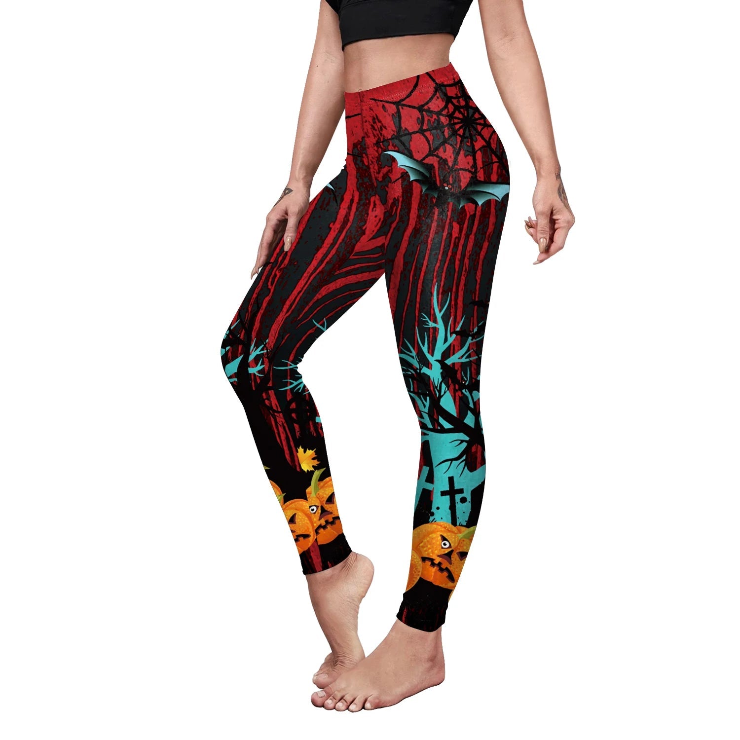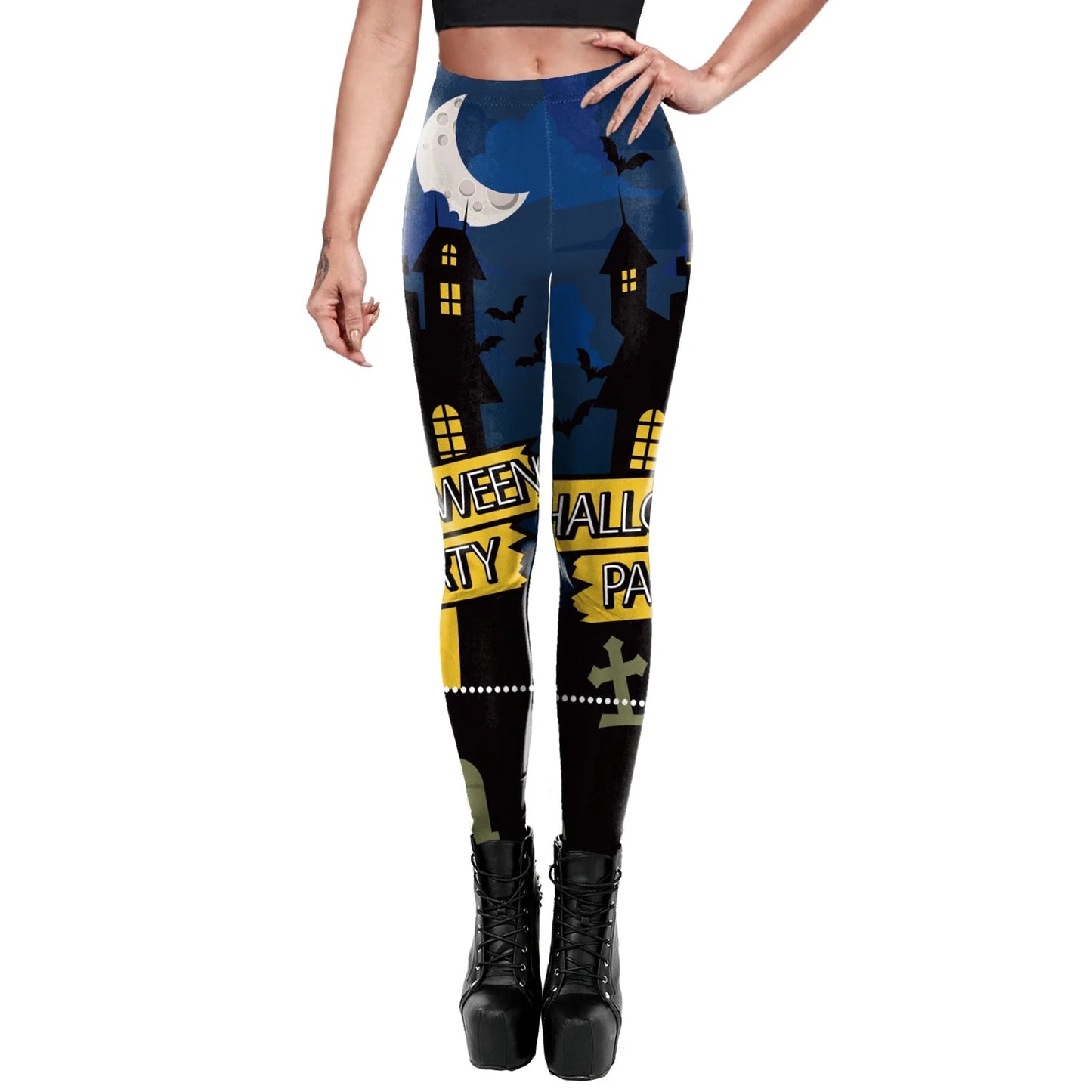 VIP FASHION Halloween Cosplay Leggings for Women Skull 3D Print Pants Slim Sexy Tights Fitness Workout Trousers Carnival Bottom