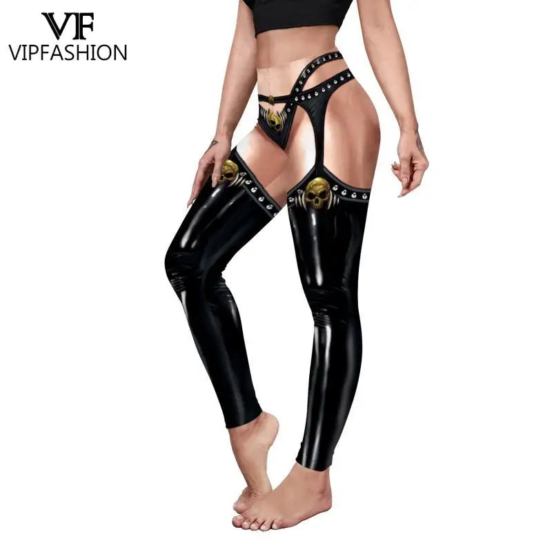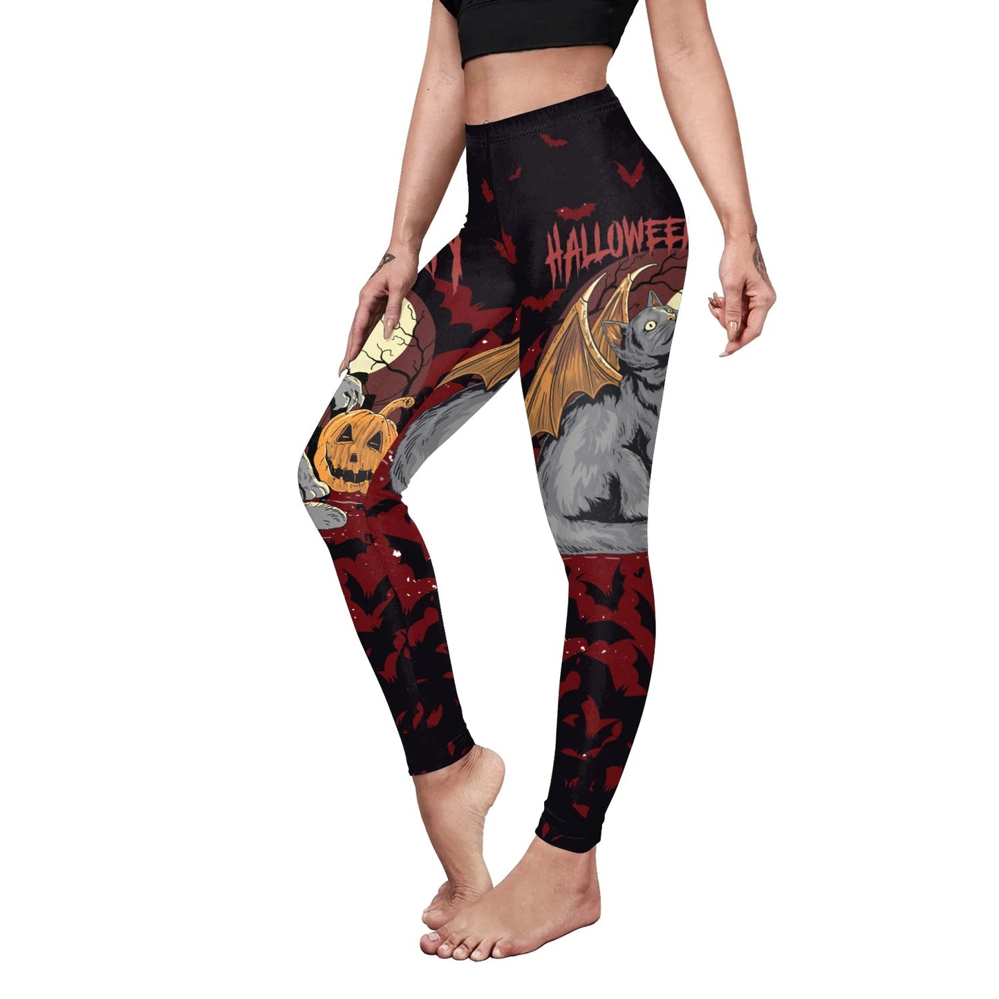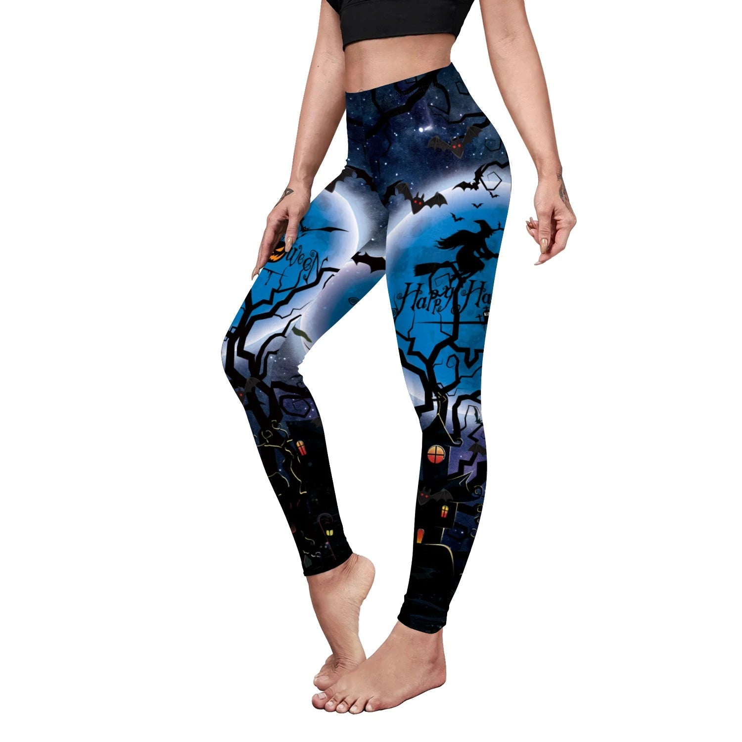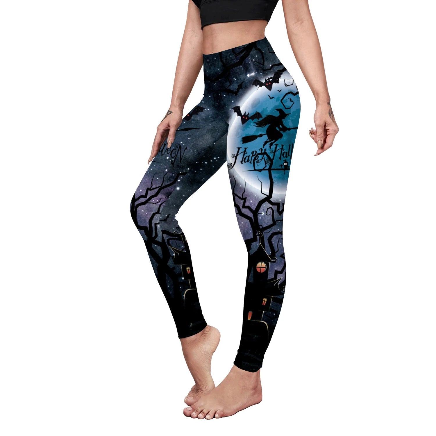 VIP FASHION Halloween Cosplay Leggings for Women Skull 3D Print Pants Slim Sexy Tights Fitness Workout Trousers Carnival Bottom