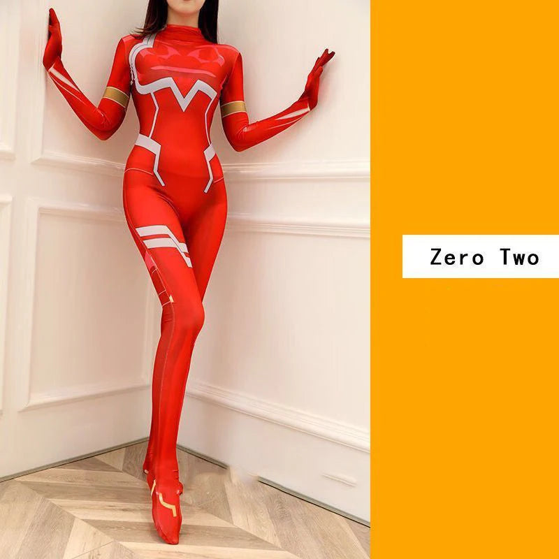 Anime Darling In The franxx 02 Zero Two Cosplay Costume For Women Halloween Costume Wig 3D Printing Bodysuit Zentai Suit